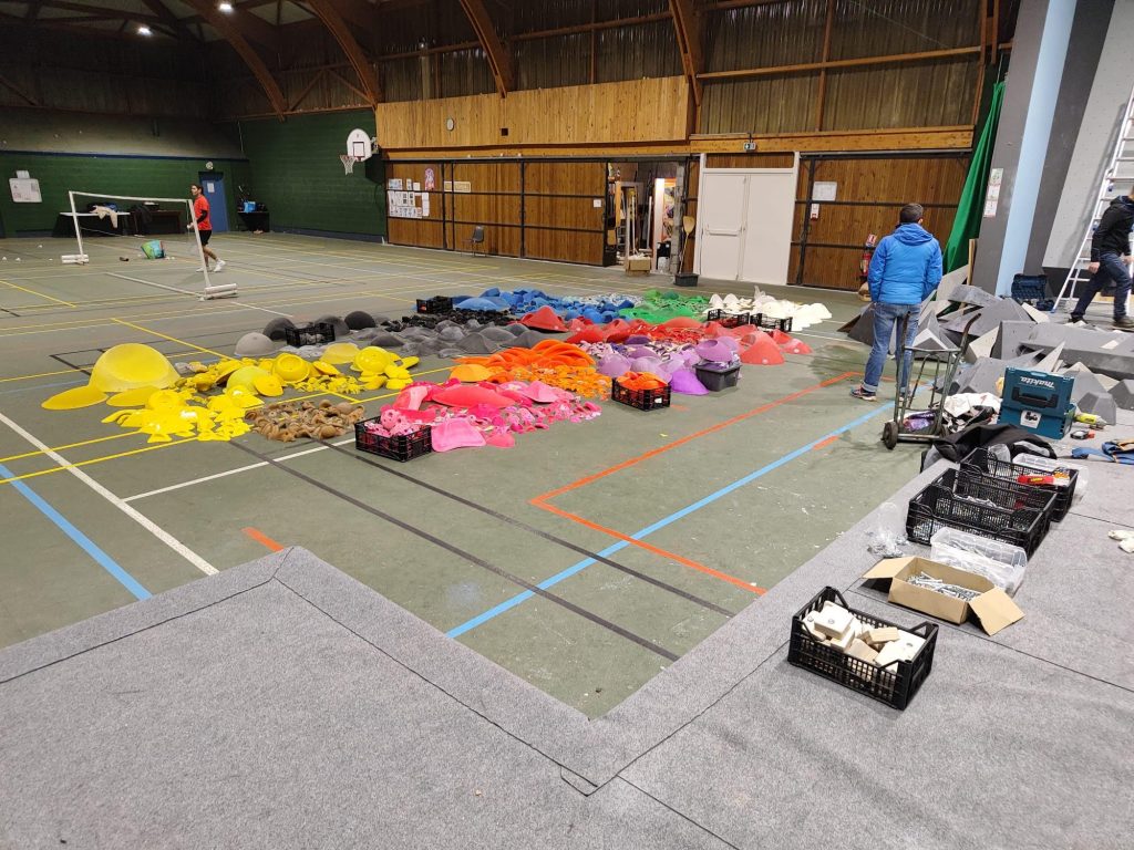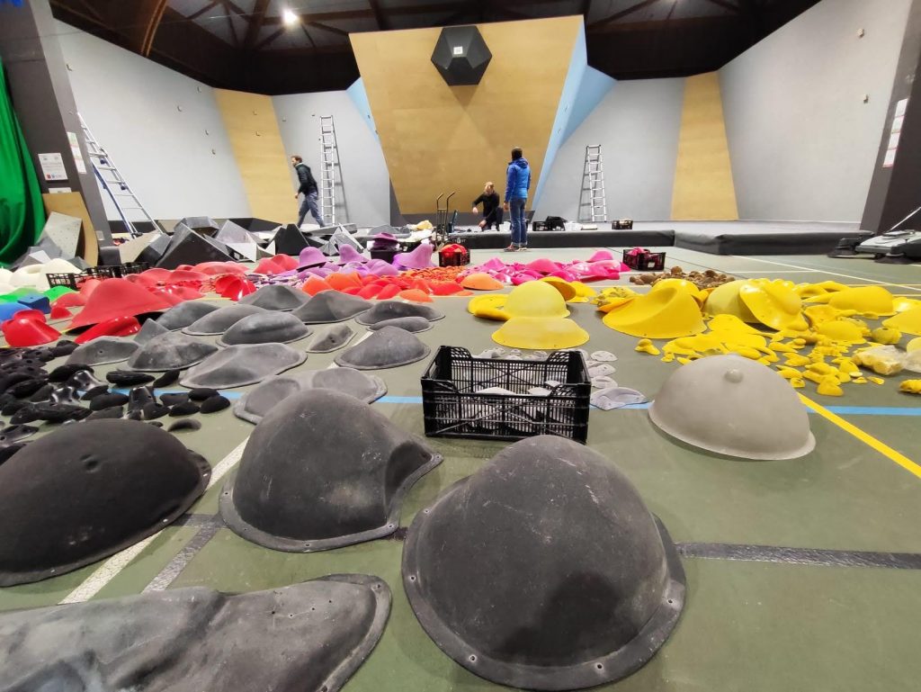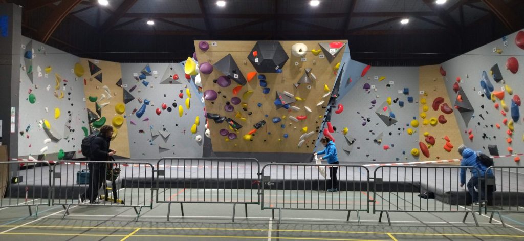 Pour ce faire, le mur est entièrement mis à nu et les prises néttoyées par les bénévoles du club. Puis 4 ouvreurs professionnels viennent ouvrir les blocs pendant 2jours pour toutes ces catégories et que la compétition soit adaptée à tous, sécuritaire et challenging sportivement!